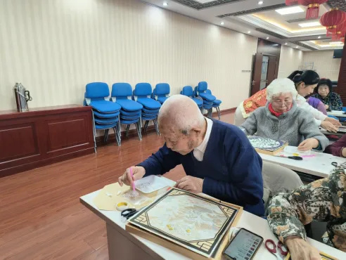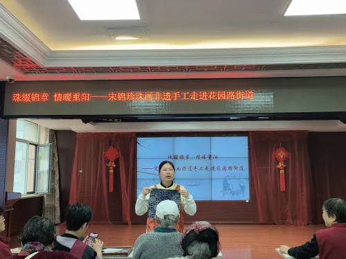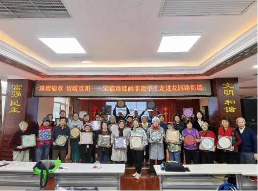 为深入践行海淀区“八进社区”工作要求,进一步弘扬中华优秀传统文化,丰富基层老龄侨胞的精神文化生活,10月29日重阳节当天,海淀区侨联联合花园路街道在街道市民活动中心开展“送文化到基层”宋锦珍珠画非遗手工体验活动,28名老龄侨胞兴致盎然参加体验活动。