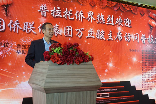 万立骏说,这次来意大利,主要是来走访侨团、看望侨胞,分享大家在海外奋斗的成果,听听大家有什么需求和期待,加强海外华人华侨社团联谊,进一步做好为侨服务工作。意大利的侨有着鲜明的特点,尽管侨的历史不长,但取得的成绩不小。百闻不如一见。看到你们精神抖擞,意气风发,充满活力,团结和谐,展现出良好的精神风貌,感到十分高兴。你们在异国他乡,艰苦创业,努力奋斗,发挥聪明才智,带动邻里乡亲,成就了事业,闯出了天地,不仅在海外发展不错,也为祖(籍)国和家乡建设贡献不少,为中意友好与交流合作发挥了积极作用。你们都是好样的,作为侨联一家人,你们发展好了,我们觉得有光彩!