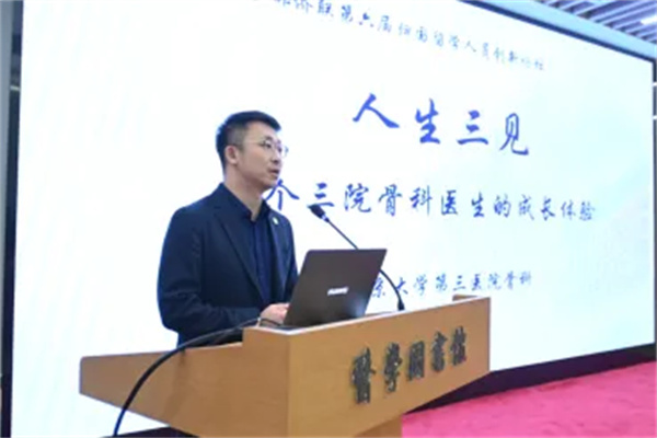 国家优秀青年医师、北京大学第三医院院长助理周非非教授的演讲主题是《人生三见——一个三院骨科医生的成长体验》。他分享了作为三院骨科医生二十年的成长体验。他通过“见自己”阐述了2002年参与䇹政学者项目对其人生价值观的重要影响;在“见天地”阶段,他展示了在Emory University Spine Center等国际顶尖机构的访学经历,以及成为中国最年轻颈椎外科研究学会会员的学术成就;最后通过“见众生”体现了其作为北京健康科普专家和海鹰脊柱健康公益基金会成员的医者仁心。他特别强调了在AI时代下坚持“慢功夫”的刻意练习、终身学习和情绪稳定的重要性,其成长历程完美诠释了从技术精进到人文关怀的医者境界。